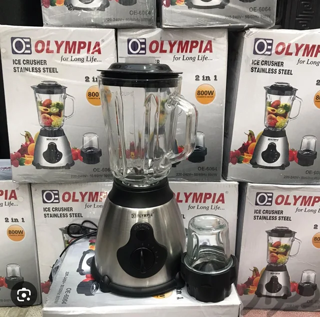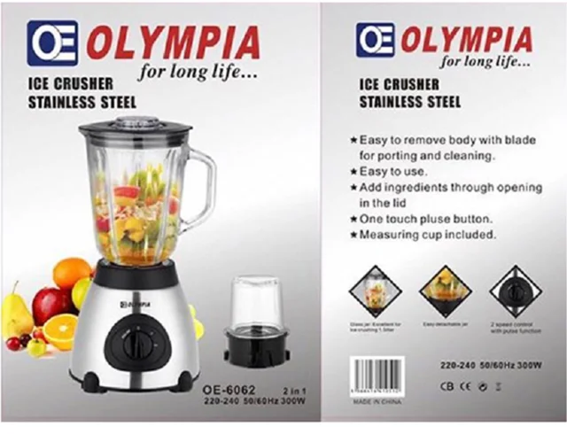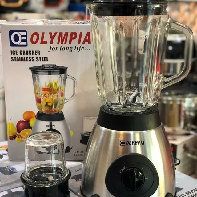 دستگاه دو کاره المپیا OLYMPIA مدل OE-6062 -ظرفیت 1.5 لیتری -پارچ شیشهای -تیغه استیل -5 سرعته -عملکرد پالسی (لحظهای) -6 عدد تیغه