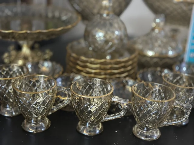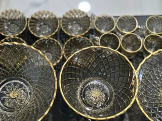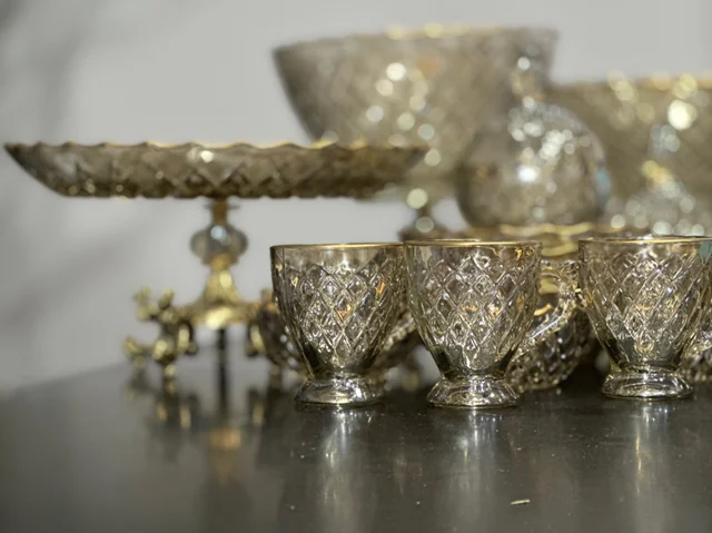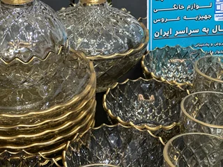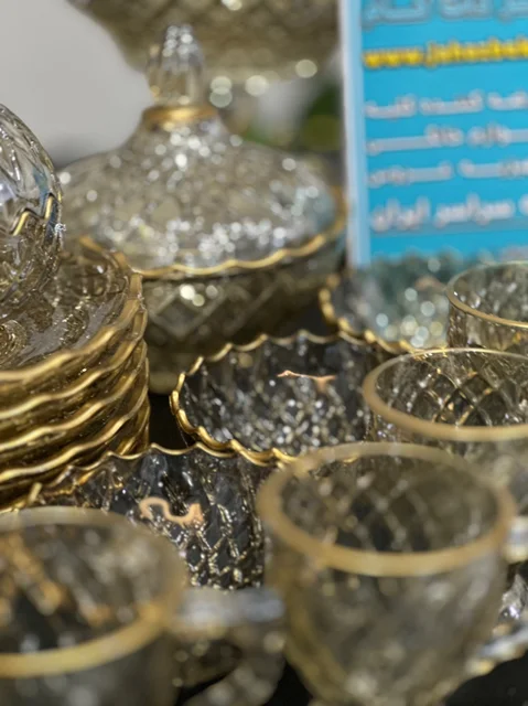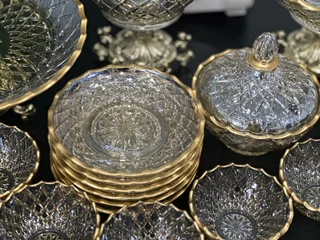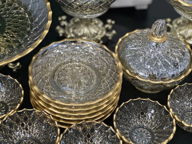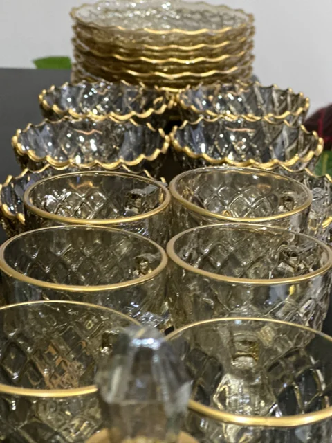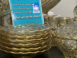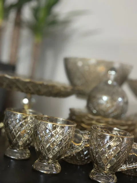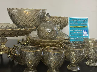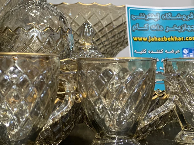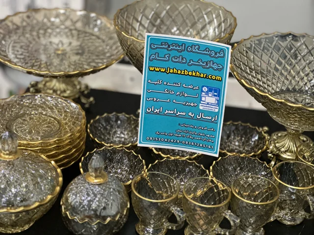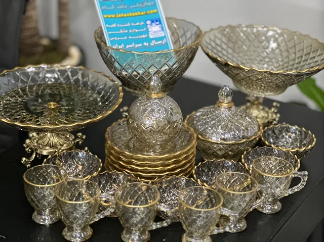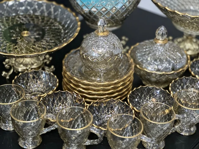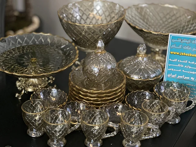 سرویس بلور پایه فلز رنگ شامپاینی لب طلاکیفیت عالی 25پارچه بسیار شیک و با دوام و لوکس