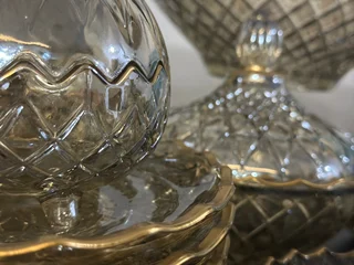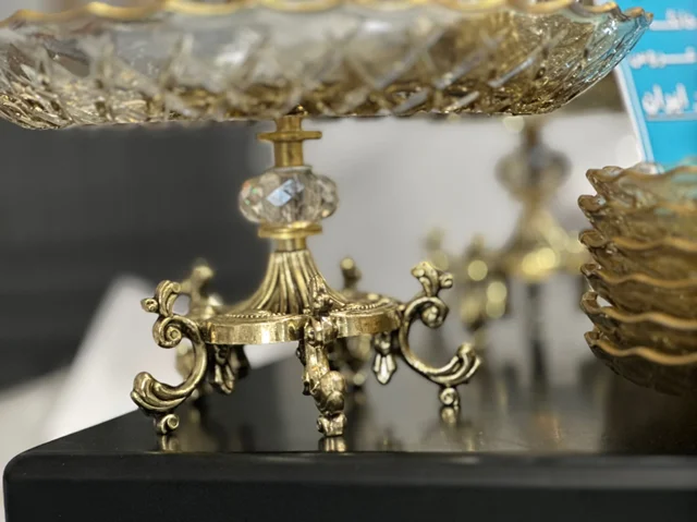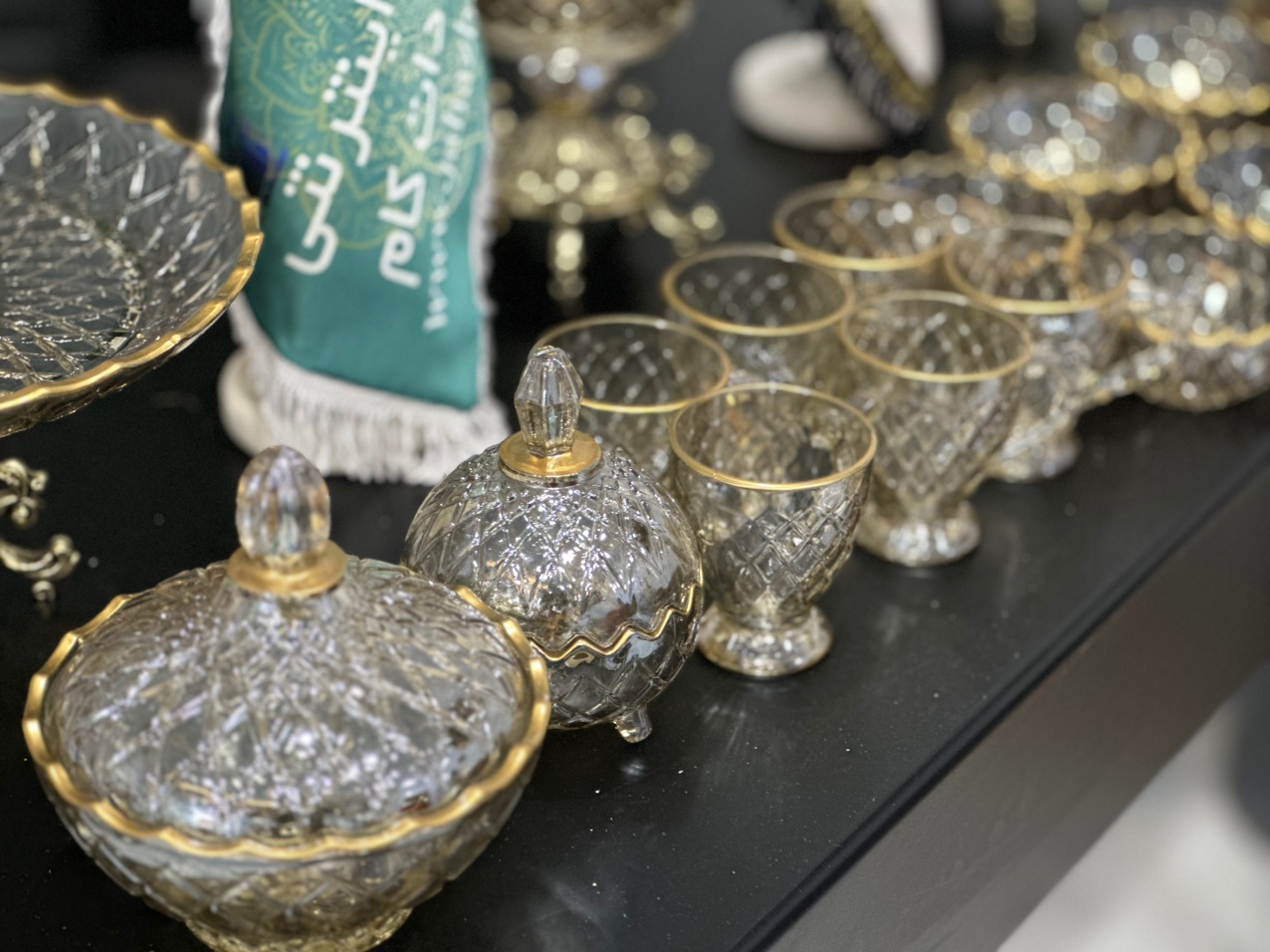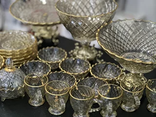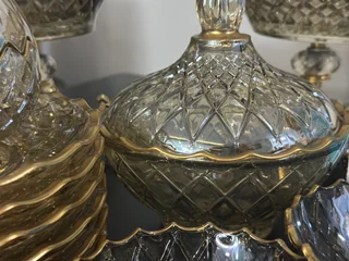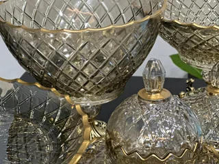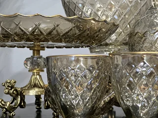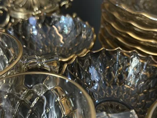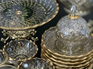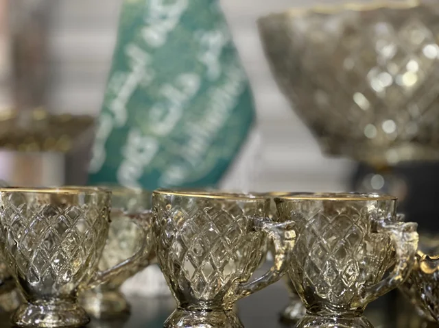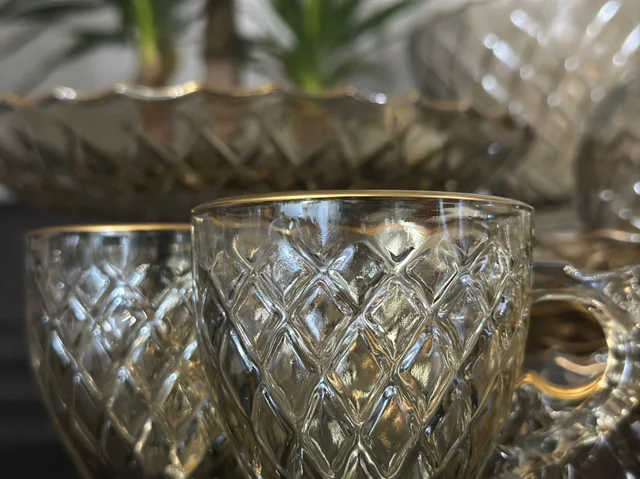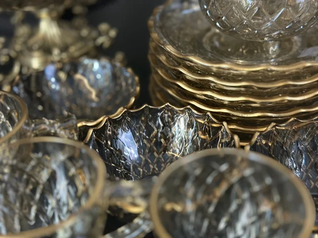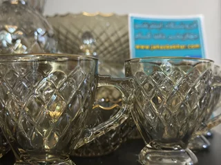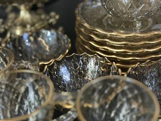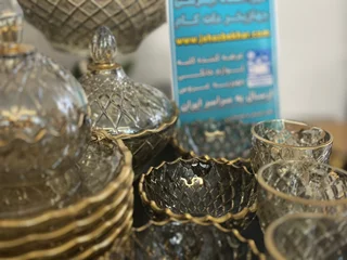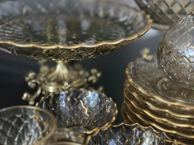 سرویس بلور پایه فلز رنگ شامپاینی لب طلاکیفیت عالی 25پارچه بسیار شیک و با دوام و لوکس