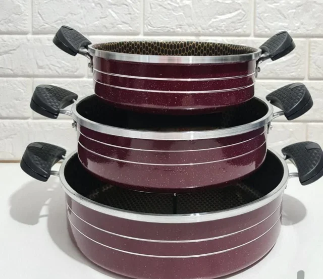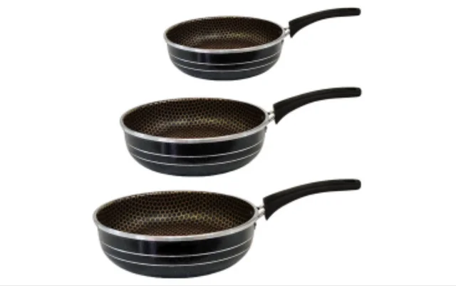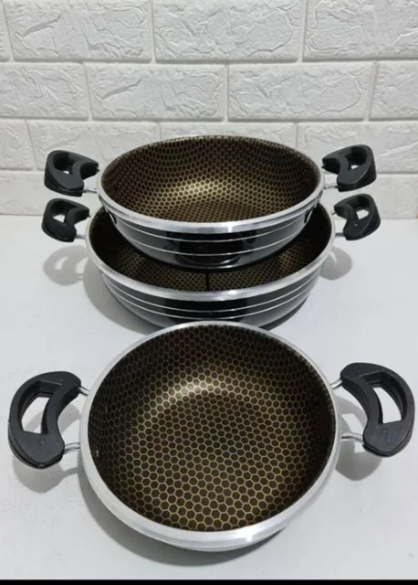 دسته : تکدسته رنگ : مشکی طرح : زنبوری. جنس : آلومینیوم دسته : فلز - پلاستیک قطر تابه کوچک : 19 سانتی مترقطر تابه متوسط : 23 سانتی مترقطر تابه بزرگ : 29 سانتی مترکیفیت : در حد خیلی خوب به نسبت قیمت آسان پاک شو : مراقبت در زمان شست و شودرب نداردشناسه کالا نداردبسته بندی کارتن ندارد - بسته بندی پلاستیک