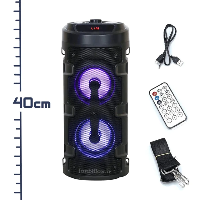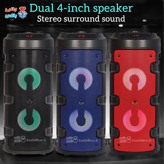 دارای دو باند 4 اینچی راه های ارتباطی با بلوتوث/فلش/ مموری/AUXقابلیت اتصال میکروفن دارای کنترل دارای رقص نور جذاب و متنوع.رقص نور جذاب و کلید کنترل نشانگر ال ای دی شارژقابلیت نگهداری موبایل دارددارای دستگیره برای حمل آسان نگهداری شارژ تا حداکثر 2 ساعت درصورتی که ولوم روی 75% باشد